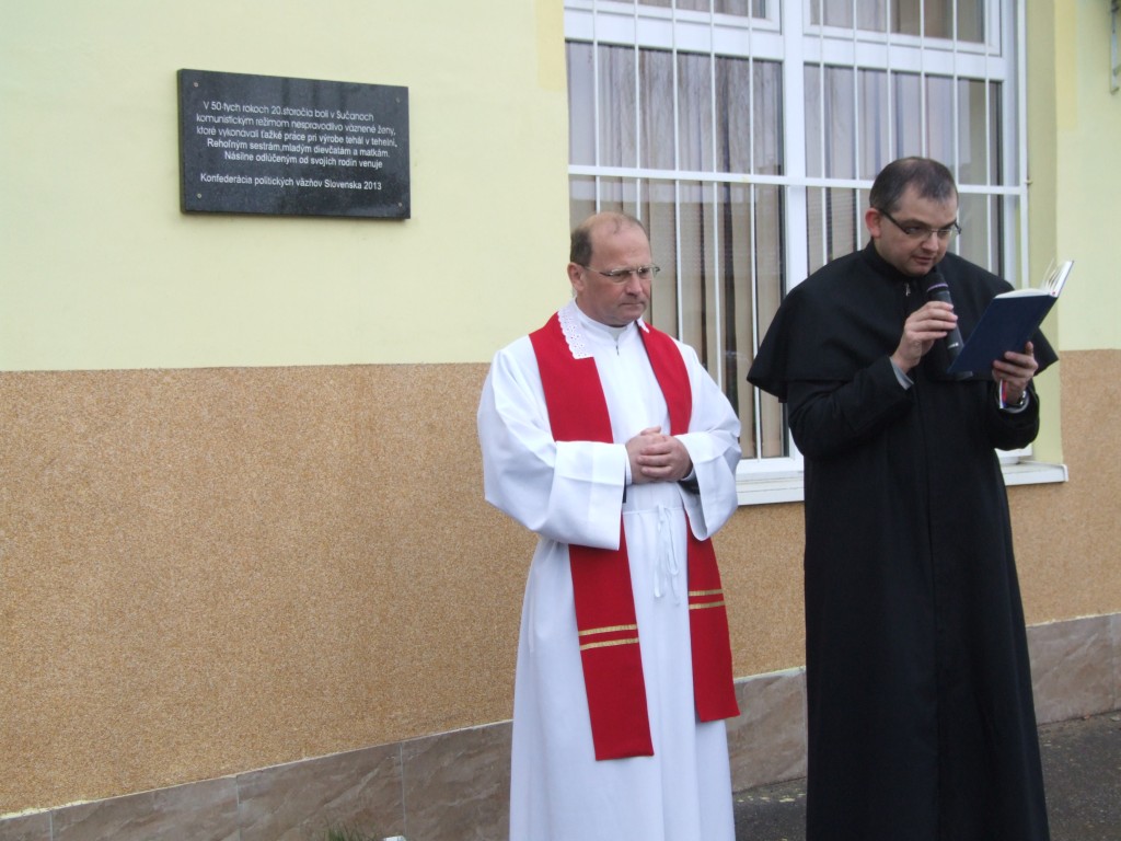 V Sučanoch bola 30. novembra 2013 odhalená pamätná tabuľa, venovaná ženám, n espravodlivo väzneným v 50.tych rokoch 20. storočia v Sučanoch, kde vykonávali nútené práce v tehelni. Slávnosť sa začala svätou omšou vo Farskom kostole Nanebovzatia Panny Márie, ktorú celebroval generálny vikár žilinskej diecézy Mons. Ladislav Stromček spolu s miestnym farárom vdp. Pavlom Pečkom, miestnym väzenským kaplánom donom Jurajom Malým SDB, P. Tadeášom Králom OFM a vdp. Ľubomírom Gunišom. Františkán P. Tadeáš Král v homílii pripomenul, že pri cestovaní vlakom cez Sučany netušil, že v blízkej tehelni pracujú nespravodlivo odsúdené ženy: rehoľné sestry, mladé dievčatá i matky odlúčené od svojich rodín a nevedeli to ani mnohí obyvatelia Sučian. Medzi obetnými darmi, ktoré priniesli viaceré členky KPVS, bol aj popolník z nepálenej hliny, ktorý v 50.tych rokoch v Sučanoch vyrobila väzenkyňa Matilda Tačovská Kašlíková z Trnavy a dodnes ho opatruje ako vzácnu pamiatku. Po sv. omši bývalí väzni plk. František Martoš a Marta Lihotská odhalili pamätnú tabuľu na budove bývalej cirkevnej školy na námestí. Kvety k tabuli položila za KPVS bývalá väzenkyňa Františka Muziková. Báseň Modlitba, zloženú v Sučanoch väzenkyňou Maruškou Soběslavskou Filipovou, prečítala sestra Olympia Augustínová DKL. Po prečítaní mien väzenkýň, ktoré sa podarilo zistiť, pamätnú tabuľu požehnal Mons. Ladislav Stromček. Nasledoval seminár v Robotníckom kultúrnom dome, kde Ladislav Mikuš z Trnavy prečítal list neprítomného Jaroslava Kašlíka, v ktorom opísal utrpenie svojej manželky v Sučanoch, ale aj ťažký život po prepustení z väzenia. Bolo prečítané tiež svedectvo Gabriely Kordovej Kleinovej, ktorá mala z ťažkej práce presilené a opuchnuté ruky, preto prijala možnosť rozvážať tehly do pece na roháli. Po ďalšej básni M. Filipovej Balada každého rána porozprávala svoje spomienky na Sučany Mária Kováčová Mičiaňová. So svojimi spomienkami na väzenie sa podelili aj prítomné rehoľné sestry vykupiteľka Justína Tuková SDR a vincentka Terézia Hovancová DKL. Vrcholom programu bolo svedectvo Bibiany Kováčikovej Wallnerovej, ktorá predniesla viaceré básne M. Filipovej ako aj kapitoly zo svojej knihy Po basovým kľúčom, kde opisuje aj pobyt v sučianskej väznici. Spomenula pomoc od miestnych tehliarskych robotníkov, ktorí väzenkyniam prepašovali rímsky misál a tak sa mohli jeho čítaním aspoň v duchu spájať so sv. omšou. Okrem jedla väzenkyniam prepašovali aj premenené hostie od rodičov uväznenej sestry vincentky Perpetuy Krivošíkovej, ktorá čítavala omšové texty z misála. Program bol ukončený v areáli bývalej tehelne, na dnešnom ranči Stará teheleň, kde po chutnom obede účastníci navštívili posledný nezbúraný zvyšok továrenského komína.