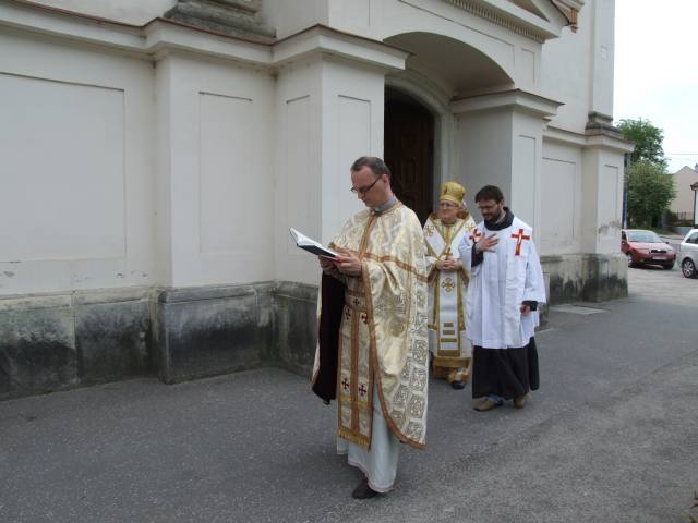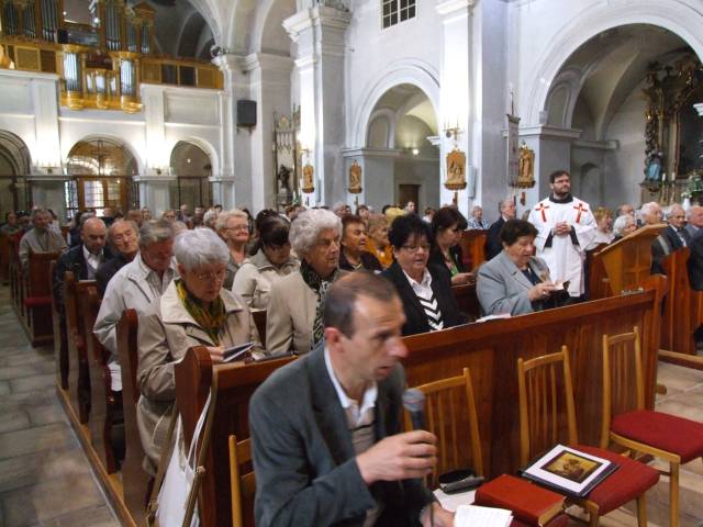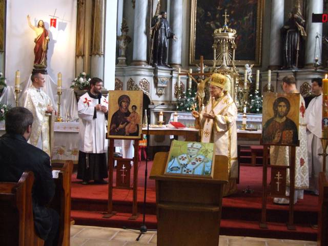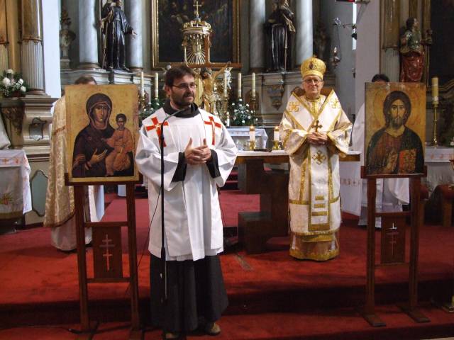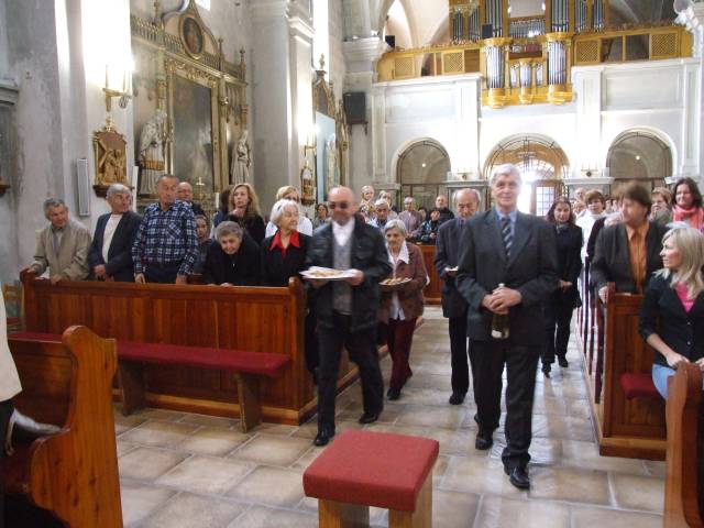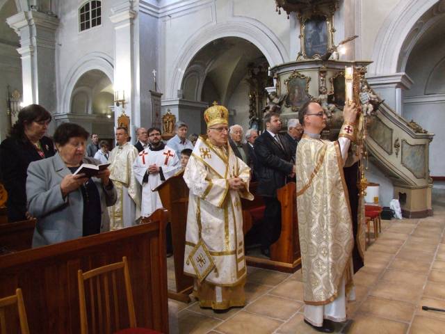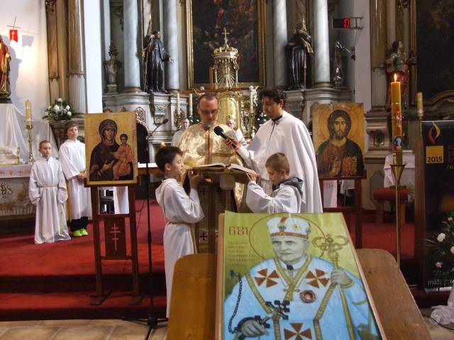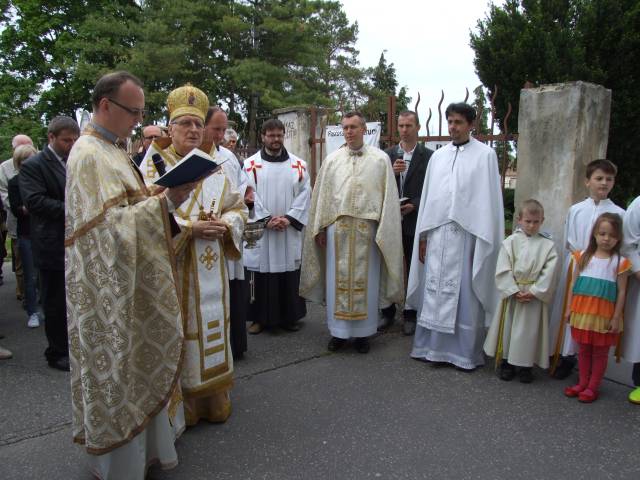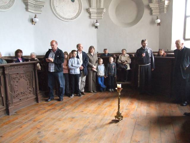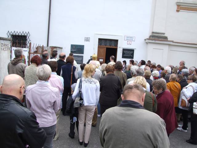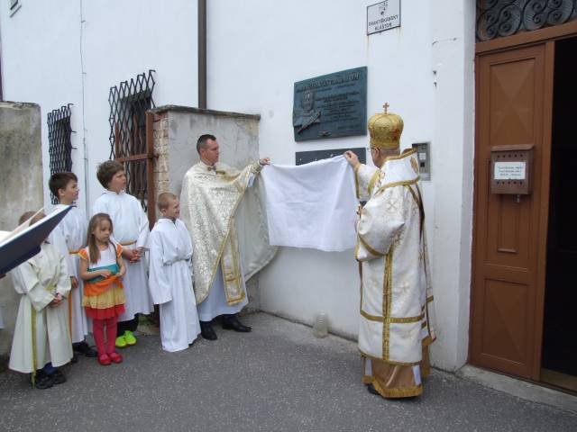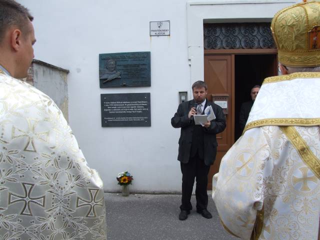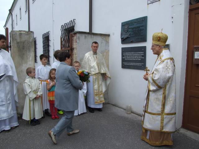 Pri príležitosti 65. výročia násilnej likvidácie Gréckokatolíckej cirkvi a sviatku blahoslaveného biskupa Vasiľa Hopku pripravila Konfederácia politických väzňov Slovenska odhalenie pamätnej tabule gréckokatolíckym kňazom, ktorí boli v rokoch 1950-1951 internovaní vo Františkánskom kláštore v Hlohovci. Program sa začal svätou liturgiou, ktorú vo Františkánskom kostole Všetkých svätých slúžil pražský apoštolský exarcha a titulárny biskup orejský Mons. Ladislav Hučko, ktorého prastrýko ThDr. Mikuláš Russnák, bol v kláštore internovaný, písal si v ňom denník a L. Hučko ho v Hlohovci navštívil pri príležitosti jeho 50. výročia kňazstva. Spolu s nim slúžili sv. liturgiu väzenskí kapláni o. Gabriel Dzvoňár z Trnavy a Rastislav Firment z Leopoldova a farár gréckokatolíckej farnosti v Trnave o. František Fedorišin. Všetkých prítomných v Hlohovci privítal gvardián kláštora P. Leopold Jablonský OFM. Po sv. liturgii L. Hučko a R. Firment odhalili pamätnú tabuľu pri vstupe do kláštora vladyka Ladislav Hučko ju posvätil. Kvety za KPVS položila Gabriela Hlôšková, ktorej dedko a strýko Andrej Zima st. a Andrej Zima ml. boli v Hlohovci internovaní. Keďže z internovaných kňazov už nik nežije (ako posledný zomrel 27. 3. 2015 o. Michal Vasiľ st., otec arcibiskupa Cyrila Vasiľa), svedectvá viacerých zosnulých kňazov prečítali Ladislav Mikuš a Stanislav Pátek. Odznela v nich spomienka aj na obnovu kríža pred kostolom, do ktorého základov vložili dokument o svojom utrpení a na zadnej strane plechového obraz na kríži zanechali nápis v cirkevnoslovanskom jazyku. Nasledovala návšteva kláštorného oratória, kde internovaní kňazi denne slúžili sv. liturgiu a prehliadka Vlastivedného múzea, ktoré sídli v budove kláštora. Osobitný dôraz bol kladený na prehliadku refektára a františkánskej expozície. Po spoločnom obede v kláštornej jedálni účastníci navštívili pamätnú tabuľu na hlohovskom zámku, ktorá je venovaná mladistvým politickým väzňom, ktorí boli v tomto zámku do roku 1958 väznení. Kvety k nej položil predseda OO KPVS Senec Karol Rosenberg ml., ktorého otec Karol Rosenberg st. bol v Hlohovci väznený.